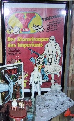 Rechts sieht man das sehr seltene Yps-Heft Nr. 510 bei dem als “Gimmick” ein Hoth-Stromtrooper beilag. Im Vordergrund zwei Die-Cast Metallmodelle aus den 80er Jahren.