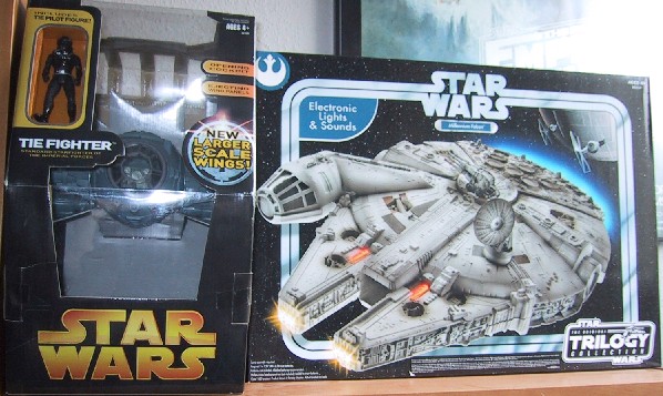 Auch ein paar Fahrzeuge sind in letzter Zeit neu aufgelegt worden. Im oberen Bild zu sehen Han Solos Millenium Falcon und der Tie-Figher hier in der neuen exklusiven Variante mit den größer dimensionierten Flügeln des filmischen Vorbilds.