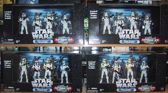 Ebenfalls neu sind diese vier Clonetrooper sets, die exklusiv in Hong Kong verkauft wurden. Es handelt sich hierbei um jeweils vier Figuren in weißen oder bunten Kampfanzügen jeweils mit oder ohne “Battle Damage” look. Diese vier limitierten Sets sind kaum noch zu vernünftigen Preisen zu bekommen und ich bin sehr froh, daß ich noch alle vier ergattern konnte.